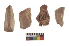 | Description / विवरण | There are n 4 utilized flakes. There are multi directional irregular scar pattern on both dorsal and ventral face of the flakes. two are tapering at one end and two have sharp edges. |