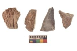 | Description / विवरण | There are n 4 utilized flakes. There are multi directional irregular scar pattern on both dorsal and ventral face of the flakes. two are tapering at one end and two have sharp edges. |