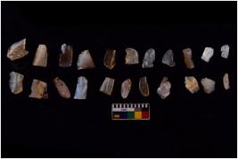 | Description / विवरण | There are n 20 Flake tool; There are multidirectional irregular scar pattern on them. few have blunt edges, Some of them are tapering at one end. |
