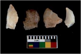 | Description / विवरण | There are n 4 utilized flake cores. There are multi directional irregular scar pattern on them. Two are tapering at one end and two have blunted edges. |