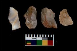 | Description / विवरण | There are n 4 utilized flake cores. There are multi directional irregular scar pattern on them. Two are tapering at one end and two have blunted edges. |