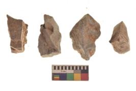 | Description / विवरण | There are n 4 utilized flakes. There are multi directional irregular scar pattern on both dorsal and ventral face of the flakes. three are tapering at one end and one has blunted edge. |