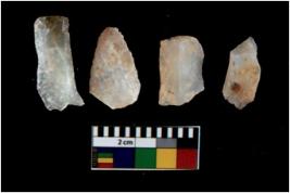 | Description / विवरण | There are n 4 utilized flake cores. There are multi directional irregular scar pattern on them. All of them are tapering at one end. |