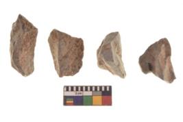 | Description / विवरण | There are n 4 utilized flakes. There are multi directional irregular scar pattern on both dorsal and ventral face of the flakes. three are tapering at one end and one has blunted edge. |