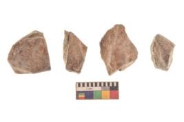 | Description / विवरण | There are n 4 utilized flakes. There are multi directional irregular scar pattern on both dorsal and ventral face of the flakes. three are tapering at one end and one has sharp edge. |