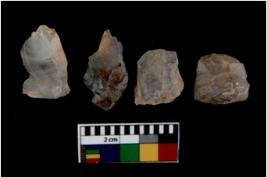 | Description / विवरण | There are n 4 utilized flake cores. There are multi directional irregular scar pattern on them. Two are tapering at one end and two have blunted edges. |