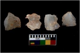 | Description / विवरण | There are n 4 utilized flake cores. There are multi directional irregular scar pattern on them. One has sharp edge and three have blunted edges. |