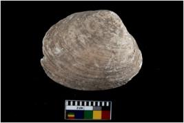 | Description / विवरण | Specimen of a large bivalve marine shell with sharp edge. Probably used as spoon. |