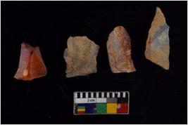 | Description / विवरण | There are n 4 of utilized worked cores and show multidirectional irregular scar pattern on both dorsal and ventral sides. Two are tapering at one end. |