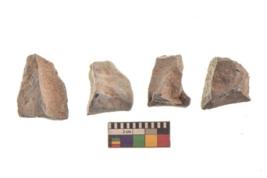 | Description / विवरण | There are n 4 utilized flakes. There are multi directional irregular scar pattern on both dorsal and ventral face of the flakes. three are tapering at one end and one has sharp edge. |