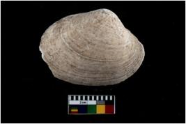 | Description / विवरण | Specimen of a large bivalve marine shell with ground edge. Probably used as spoon. |
