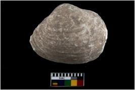 | Description / विवरण | Specimen of a large bivalve marine shell with ground edge. Probably used as spoon. |