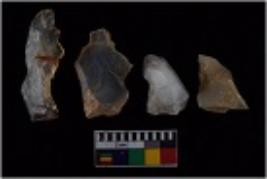 | Description / विवरण | There are n 4 of utilized worked cores. They show multidirectional irregular scar pattern and are tapering on one end. |