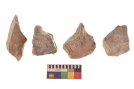 | Description / विवरण | There are n 4 utilized flakes. There are multi directional irregular scar pattern on both dorsal and ventral face of the flakes. two are tapering at one end and two have sharp edges. |