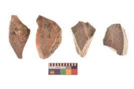 | Description / विवरण | There are n 4 utilized flakes. There are multi directional irregular scar pattern on both dorsal and ventral face of the flakes. two are tapering at one end and two have sharp edges. |