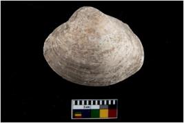 | Description / विवरण | Specimen of a large bivalve marine shell with sharp edge. Probably used as spoon. |