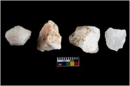 | Description / विवरण | Specimen of cores with visible weathered cortex and few broad fluted marks. Almost all are irregular in shape and size. |