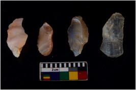 | Description / विवरण | There are n 4 flakes tool; there are flakes with sides trimmed, Marks of secondary flaking are present on the both the faces. The dorsal is relatively flat. |