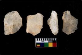 | Description / विवरण | Specimen of a cores with several broad fluted marks. The reverse bulb and platform can be seen. The flake scars are seen on all sides. |