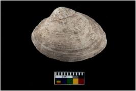 | Description / विवरण | Specimen of a large bivalve marine shell with ground edge. Probably used as spoon. |