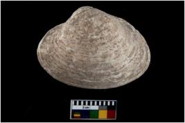 | Description / विवरण | Specimen of a large bivalve marine shell with ground edge. Probably used as spoon. |