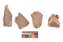| Description / विवरण | There are n 4 utilized flakes. There are multi directional irregular scar pattern on both dorsal and ventral face of the flakes. two are tapering at one end, and one has pointed, and one has sharp edge. |