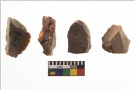 | Description / विवरण | A specimen of a fluted core having several broad fluted marks indicating the detached blades from it |