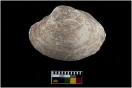 | Description / विवरण | Specimen of a large bivalve marine shell with sharp edge. Probably used as spoon. |