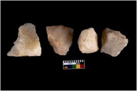 | Description / विवरण | Specimen of a cores with several broad fluted marks. The reverse bulb and platform can be seen. The flake scars are seen on all sides. |