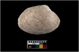 | Description / विवरण | Specimen of a large bivalve marine shell with ground edge. Probably used as spoon. |