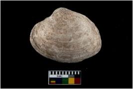 | Description / विवरण | Specimen of a large bivalve marine shell with ground edge. Probably used as spoon. |