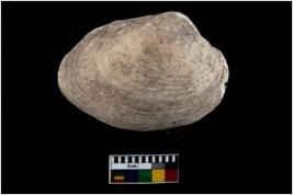 | Description / विवरण | Specimen of a large bivalve marine shell with ground edge. Probably used as spoon. |