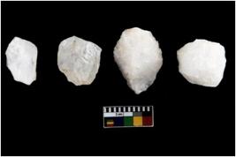 | Description / विवरण | Specimen of cores with visible weathered cortex and few broad fluted marks. Almost all are irregular in shape and size. |