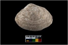 | Description / विवरण | Specimen of a large bivalve marine shell with ground edge. Probably used as spoon. |
