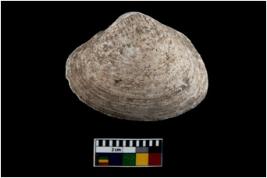 | Description / विवरण | Specimen of a large bivalve marine shell with ground edge. Probably used as spoon. |