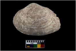 | Description / विवरण | Specimen of a large bivalve marine shell with sharp edge. Probably used as spoon. |