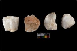 | Description / विवरण | Specimen of cores with visible weathered cortex and few broad fluted marks. Almost all are irregular in shape and size. |