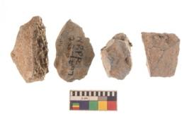 | Description / विवरण | There are n 4 utilized flakes. There are multi directional irregular scar pattern on both dorsal and ventral face of the flakes. two are tapering at one end and two have sharp edges. |