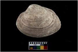 | Description / विवरण | Specimen of a large bivalve marine shell with ground edge. Probably used as spoon. |