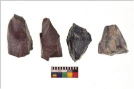 | Description / विवरण | Specimen of a cores with several broad fluted marks and some of them are tapering at one end. |