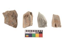 | Description / विवरण | There are n 4 utilized flakes. There are multi directional irregular scar pattern on both dorsal and ventral face of the flakes. two are tapering at one end and two have sharp edges. |