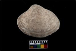 | Description / विवरण | Specimen of a large bivalve marine shell with ground edge. Probably used as spoon. |
