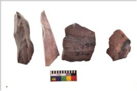 | Description / विवरण | Specimen of a cores with several broad fluted marks and some of them are tapering at one end. |