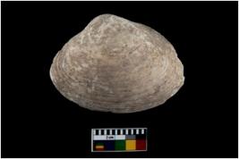 | Description / विवरण | Specimen of a large bivalve marine shell with sharp edge. Probably used as spoon. |