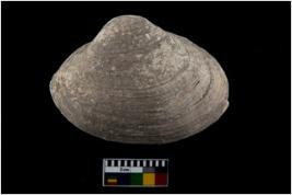 | Description / विवरण | Specimen of a large bivalve marine shell with ground edge. Probably used as spoon. |