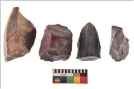| Description / विवरण | Specimen of a cores with several broad fluted marks and some of them are tapering at one end. |