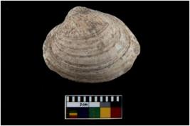 | Description / विवरण | Specimen of a large bivalve marine shell with ground edge. |