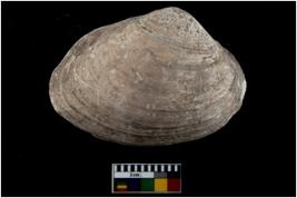 | Description / विवरण | Specimen of a large bivalve marine shell with ground edge. |
