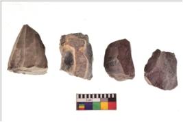 | Description / विवरण | Specimen of a cores with several broad fluted marks and some of them are tapering at one end. |