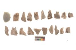 | Description / विवरण | There are n 20 utilized flakes. There are multi directional irregular scar pattern on both dorsal and ventral face of the flakes. All are sharp edges, and few have broken tip. |